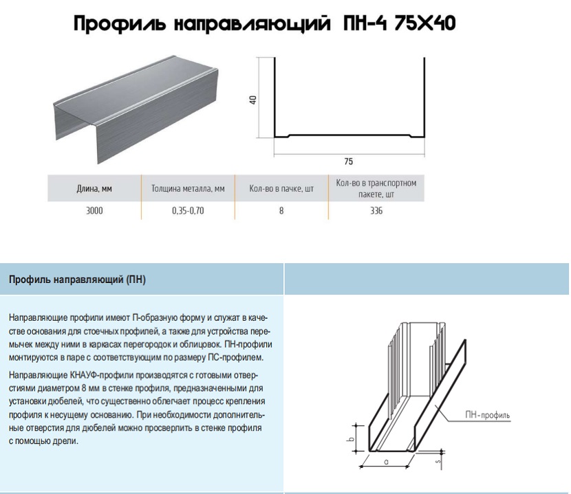 ПН-4 профиль направляющий 75х40х0,6мм оцинкованная сталь 3м