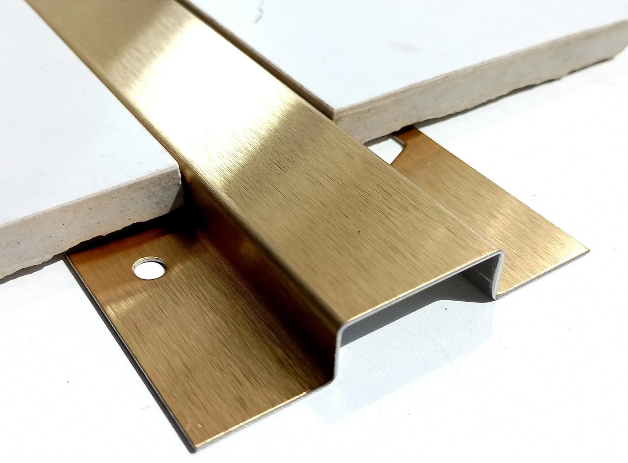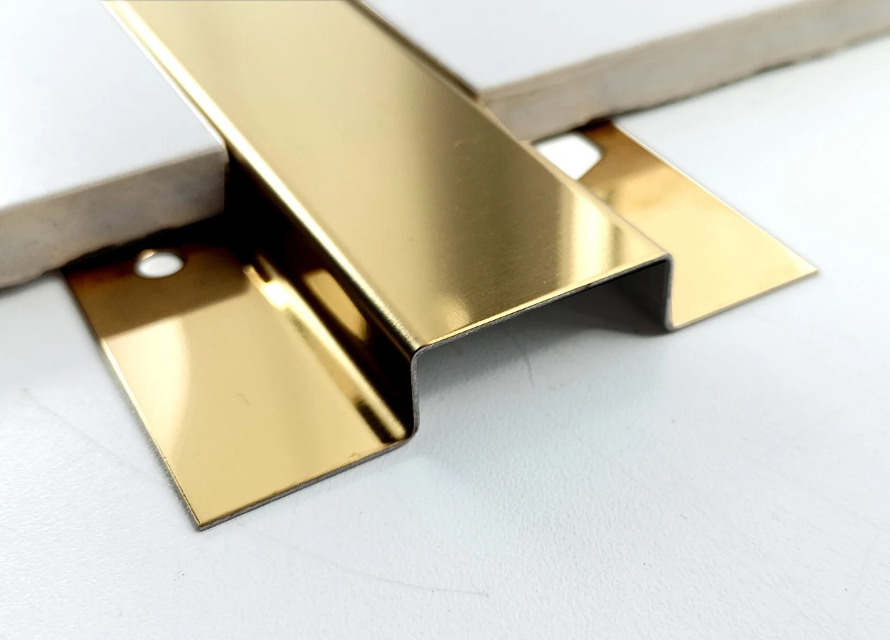 По желанию заказчика профиль может быть выполнен с покрытием нитридом титана в оттенках «золото», «латунь», «бронза», «черный», «розовое золото» и др. Это ионное напыление, которое не выцветает, устойчиво к истиранию и сохраняет насыщенность цвета на весь срок службы изделия.