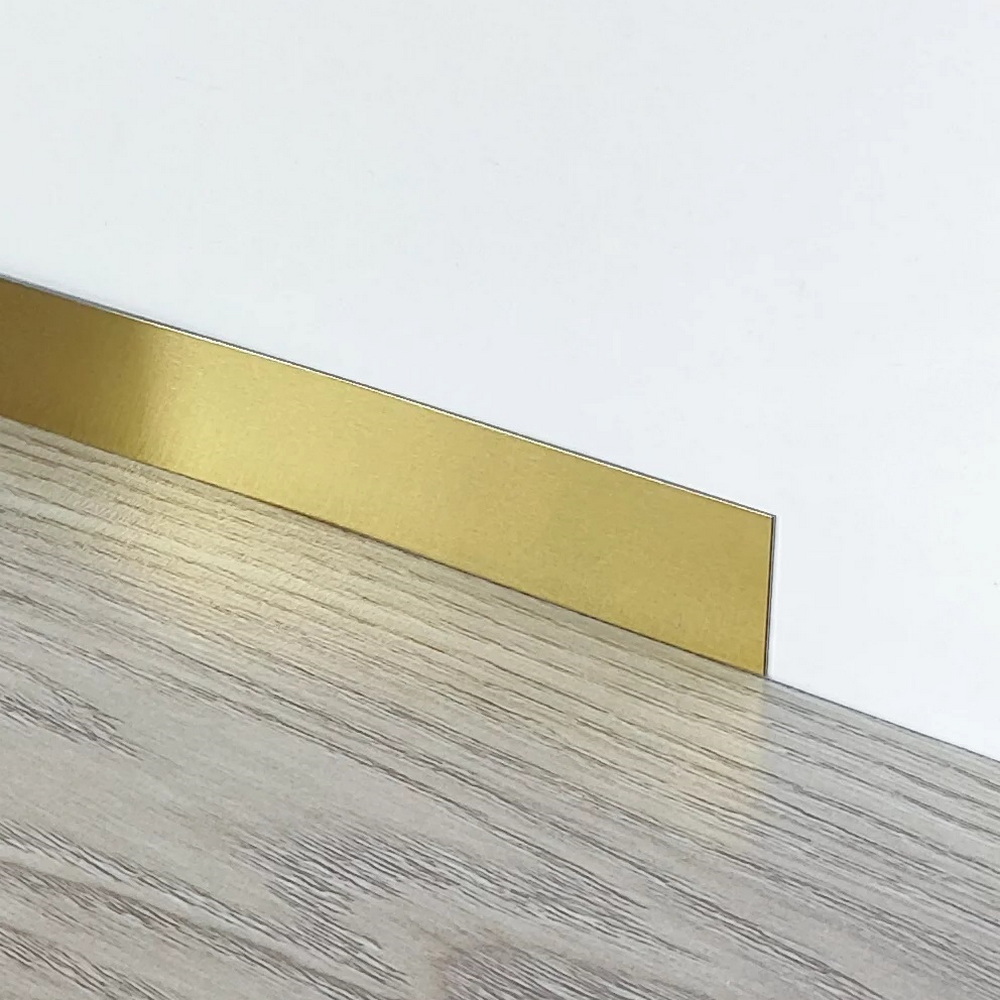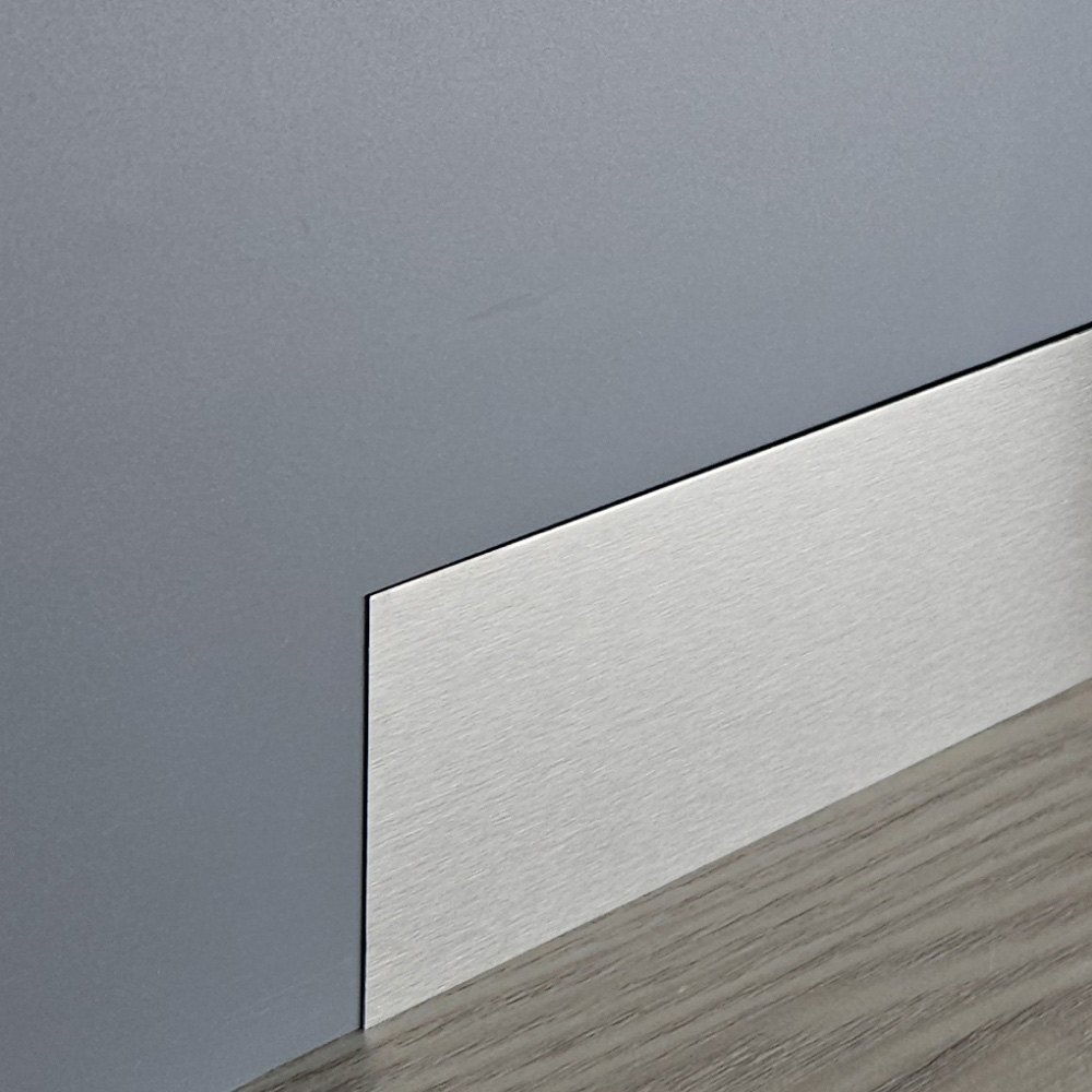 Плинтус-полоса — это элегантное и минималистичное решение для тех, кто хочет добавить интерьеру графичности и стиля, но не нуждается в маскировке крупных зазоров между стеной и полом. В отличие от классических плинтусов с вертикальной полкой, данное изделие представляет собой плоскую полосу из нержавеющей стали, которая крепится непосредственно к стене на уровне пола, подчеркивая линию сопряжения поверхностей.