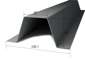 Материал для производства шляпного профиля – сталь с оцинкованным покрытием марок С350, С250 и 08ю. Толщина оцинкованного металла – от 0,5 мм до 1,0 мм. Высота гнутого профиля – 60 мм.