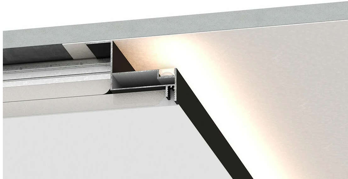 Теневой профиль: Служит для создания четких геометрических линий на стенах и потолке, позволяя делать идеально ровные углы и переходы между уровнями .