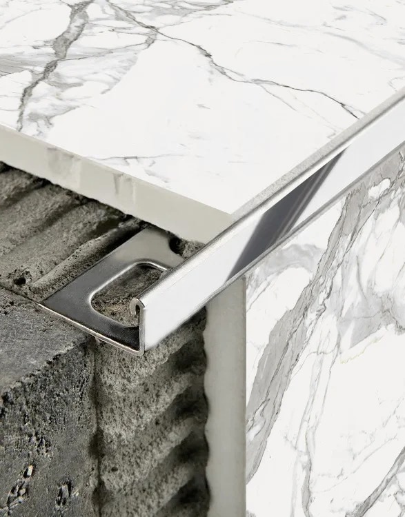 Классический Г‑образный профиль из нержавеющей стали, если его просто согнуть под 90°, оставляет открытый торец, который может быть травмоопасным и выглядеть излишне «технологичным». В профиле TR этот торец загнут внутрь, формируя плавное утолщение. Благодаря этому: