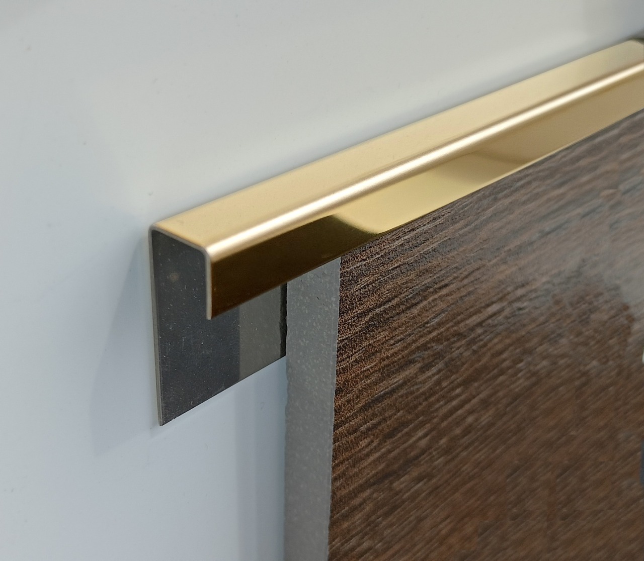 По желанию заказчика профиль может быть выполнен с покрытием нитридом титана в оттенках «золото», «латунь», «бронза», «черный», «розовое золото» и др. Это ионное напыление, которое не выцветает, устойчиво к истиранию и сохраняет насыщенность цвета на весь срок службы изделия.