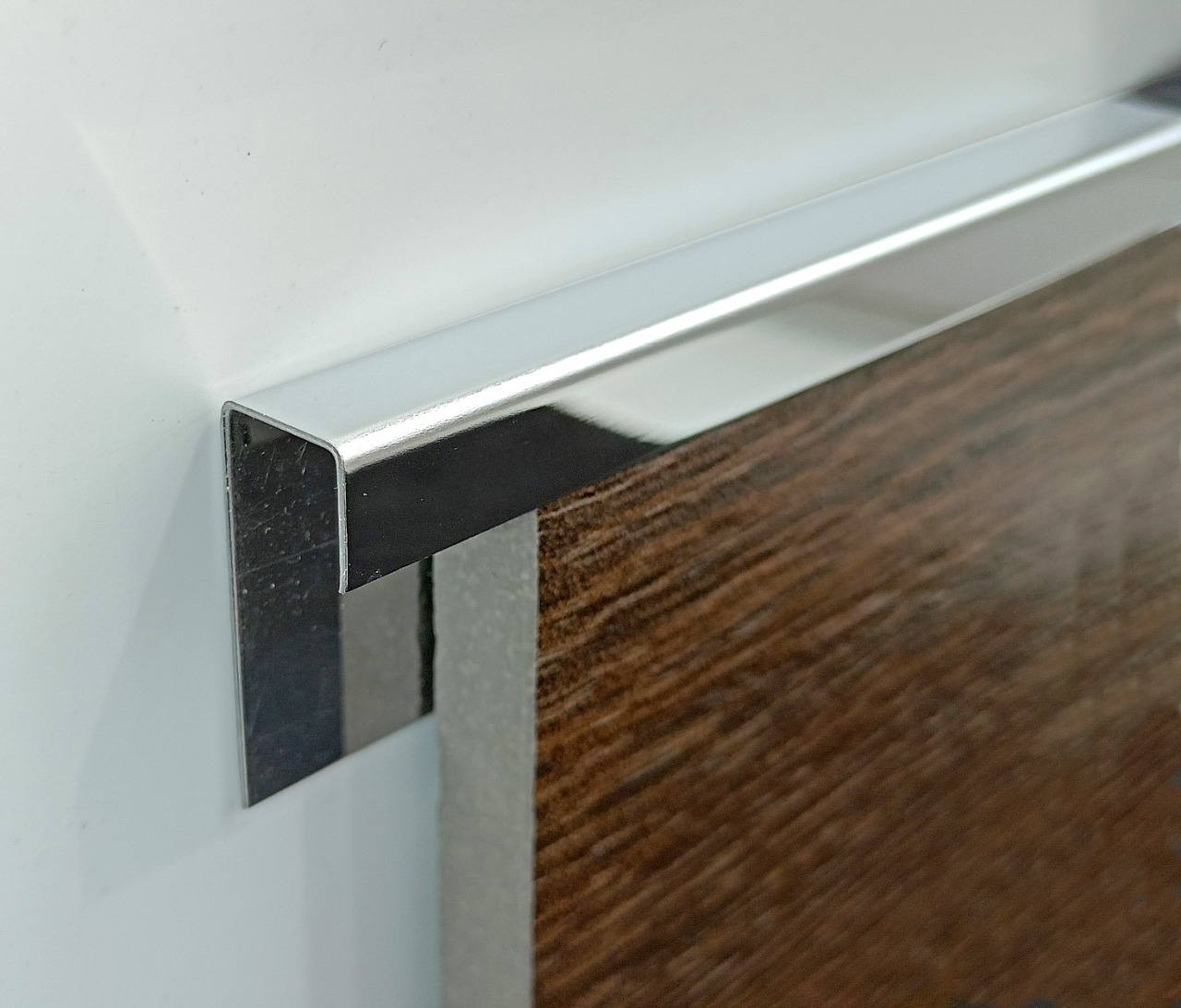 Профиль одинаково хорошо смотрится в современных стилях (минимализм, лофт, хай-тек) и в классических интерьерах, где металлическая окантовка служит элегантным акцентом.
